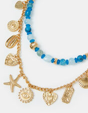 A blue-tiful addition to your bag, this bag charm is strung with a sea-inspired chain of pendants and a mix of beads in bright ocean colours. Attach to each bag handle with the round clip fastenings.