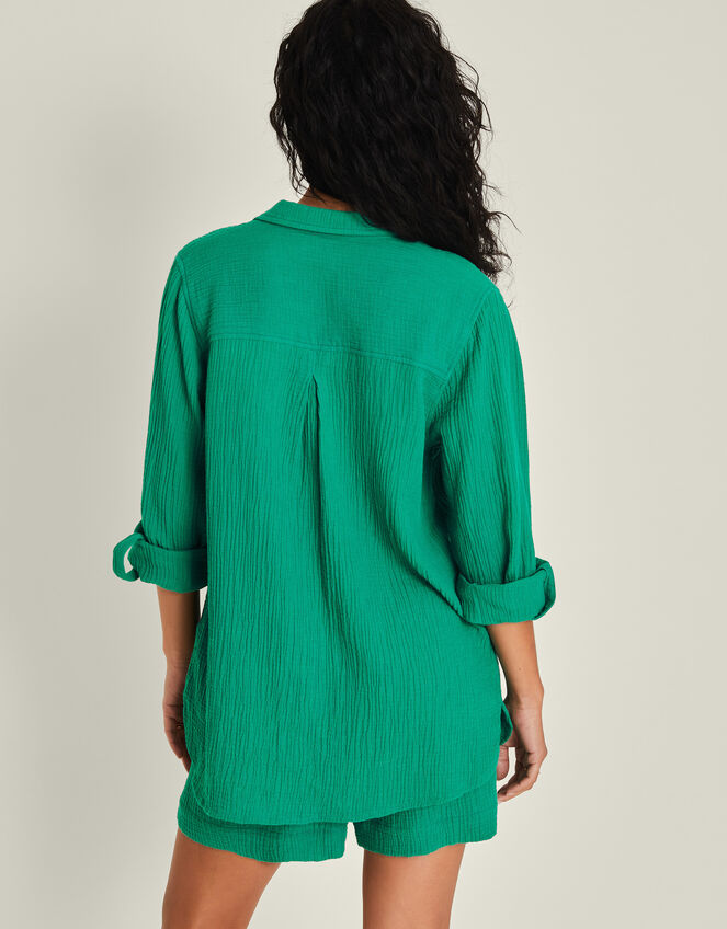 Designed in a tropical green fabric with a crinkly texture, this breezy cover-up is finished with sleeves you can roll up, two chest pockets and buttons through the front. Best of all? You can have it in the bottom of your beach bag all day and not worry about the creases. Teal