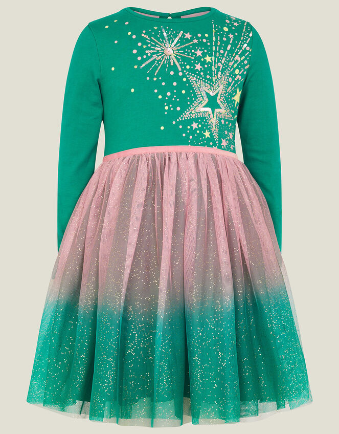 This easy-peasy 2-in-1 dress is the perfect party piece for festive celebrations. Comprised of a simple long sleeve top and fluffy tulle skirt, it's finished with embellished stars and a sparkly skirt for a dazzling touch. Green