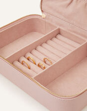 Somewhere special for your loose jewellery bits, our Jada jewellery box is perfect for your travels. It's crafted in a sleek rectangle profile and closes with a zip fastening, featuring compartments for your rings, necklaces, and bracelets.