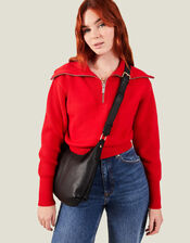 Because who doesn't love an everyday bag that fits everything? Designed in leather, this medium-sized bag sits comfortably across the body with a scoop profile and zip fastening. Finished with a small zip pocket and adjustable strap.