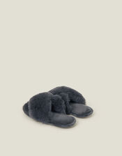 Luxe Cross Strap Faux Fur Slippers Grey
