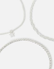 Created in silver-tone metal, this anklet set will simply glimmer under the tide as it runs over your feet. Each piece features a unique chain, with a star charm for a twinkling finish. Three included.