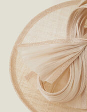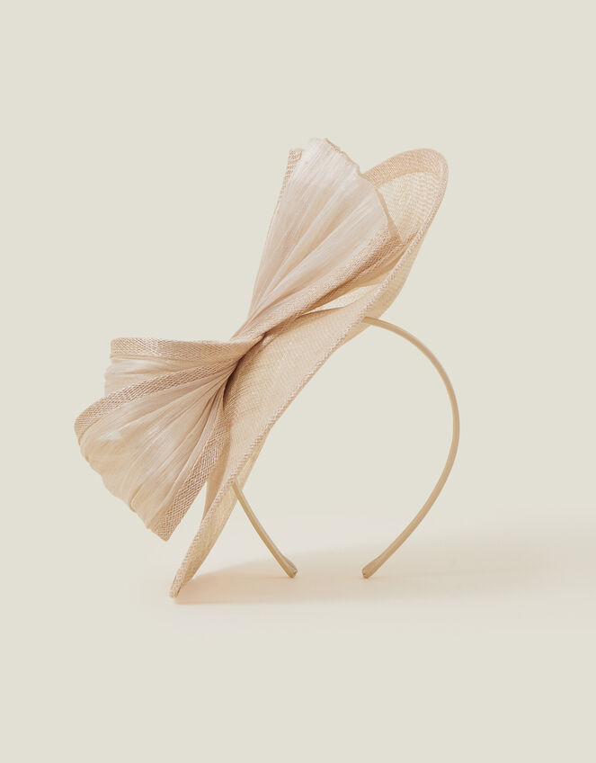 Prepare for long days of celebrations with this fascinator. Designed with a statement teardrop disc, it features a large bow for a traditional look. Sat on a flexible band for comfort. Natural