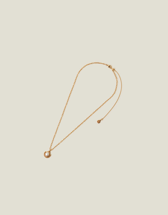 Who doesn't love a vintage finish? Engineered in 14ct gold-plated metal, this necklace features a pearly pear drop pendant on a fine chain. Fastens with a lobster clasp and extender.
