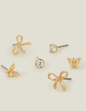 Featuring bows, butterflies, and diamante stones with golden accents, this set of earrings make the perfect finishing touches to your everyday. Three pairs included. Non-refundable.