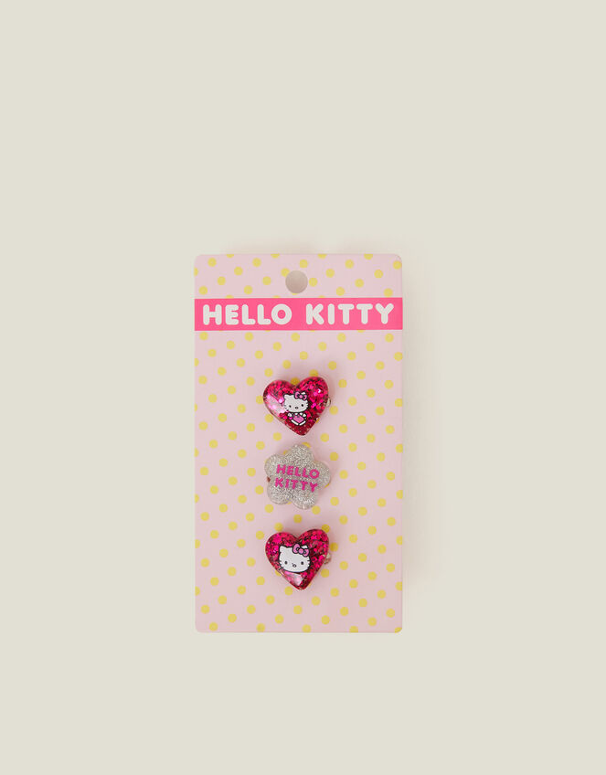 Dream big, sparkle more! This set of rings feature heart and flower shapes doused in glitter and finished with cute Hello Kitty® designs. Complete with adjustable silver-tone bands so they fit on any finger they choose. Three included.