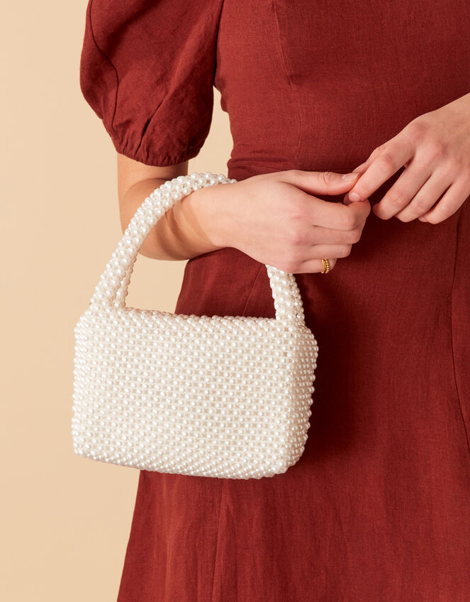 Featuring a structured silhouette, the pearl handheld back is specially crafted for the more kitsch bride. It boasts a rectangle profile and matching top handle, embellished entirely with pearls. The gold zip fastening will keep all bridal essentials safe, just pop your phone and lippy in and you'll be prepared for anything.