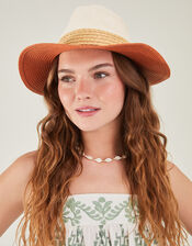 A classic fedora, but make it pop: this hat features a warm finish that'll complement every beach party look it's paired with. It's finished with a white colourblock crown and tan brim, just don't forget to pop it in your suitcase!