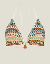 Designed in stretchy swim fabric, this bohemian bikini top showcases a crochet design in neutral tones. It fastens at the neck and back before finishing with a tassel detail to the front. Matching bikini bottoms available. Natural