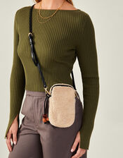 Designed in soft faux shearling, this bag is all you'll need for autumn walks. A practical place to keep your phone, keys and cards safe, it features a zip fastening, beaded tassel and an adjustable strap.