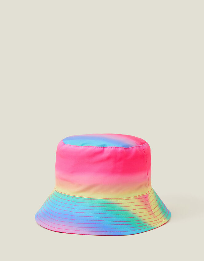 A slew of colours in rainbow ombre adorns this bucket hat. Perfect for sunny days by the beach, it's designed with a bucket hat profile that'll protect them from the sun. It's reversible, too! Flip it round and opt for a fuchsia style. Multi
