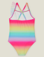 Prepare for them to show off their best mermaid moves when they slip into this swimsuit for hours of fun at the pool. Designed in stretchy swim fabric, it features an ombre print alongside an asymmetric frill. Finished in a comfortable fit with elasticated crossover straps and a brief cut. Multi