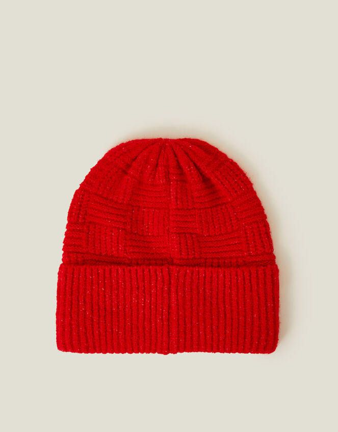 Boasting a classic design with a playful ribbed finish in a check pattern, this beanie hat is the perfect finishing touch to all your winter looks. Complete with a turned-up brim for keeping your ears extra warm and cosy. Red