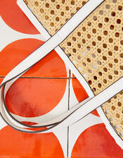 Designed with a forever-summery rattan finish, this bag is given a contemporary twist with white faux-leather panelling throughout. Its medium size allows room for sunnies, a water bottle, and a good book for pitstops in the park. Complete with top handles that rest comfortably in the crook of your arm and an optional, adjustable long strap for a cross-body style. Fastens with a magnetic snap closure.
