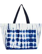 This handy tote bag has a woven, soft-shell outer with a two-tone tie-dye print. It fastens at the top with a magnetic press-stud and has two separate pockets to help organise your items.