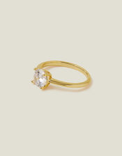Simple sparkles: Designed in gold-plated metal, this ring features a simple band with a solitaire gem for a dazzling finish.