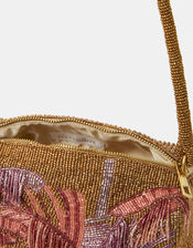 Beaded bags are so in and this one is the perfect plus-one for all your holiday and night-out looks. Designed with a main zip compartment and strap to sling over the shoulder, it's decorated with beads and fringing in golden, pink and purple colours. Just dreamy.