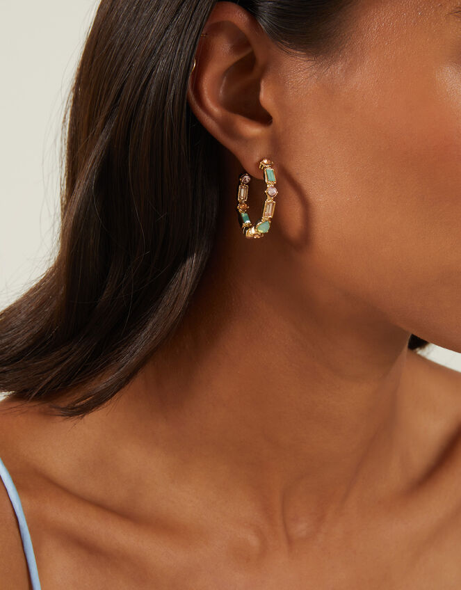 With oceanic gems embedded in gold-tone metal, where will you style these hoops? Sitting close to the lobe, they're subtle and sparkly (the perfect combination), and complement a simple gold stud beautifully.