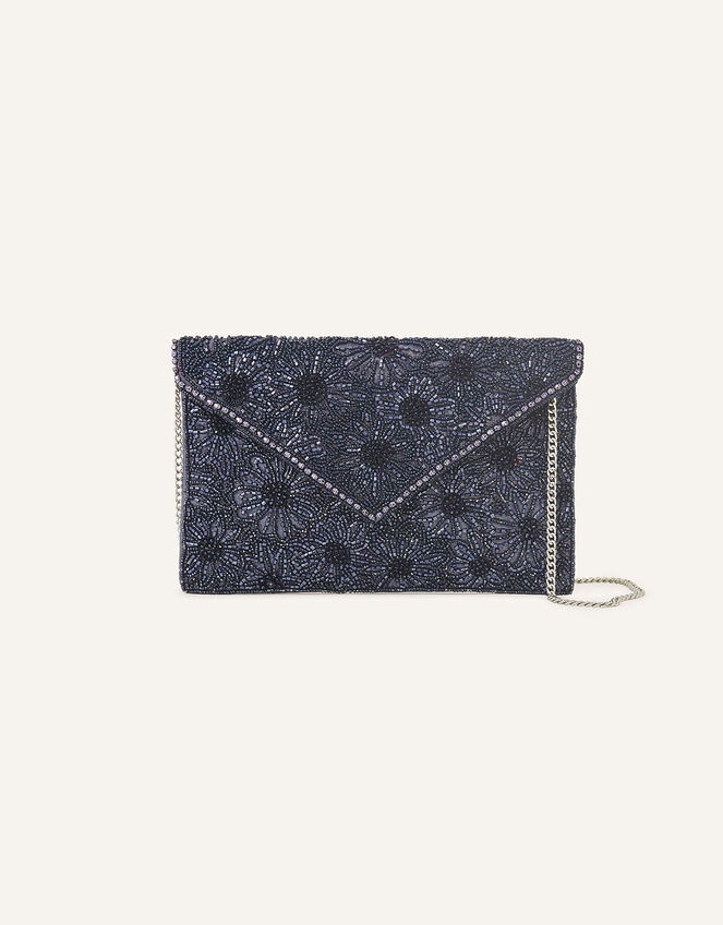 This clutch is embellished with beads in a floral print that's worthy of those extra-special occasions. It fastens with a magnetic press-stud and has an internal zip pocket for your coins, cards and notes. There's also a detachable chain strap for hands-free holding.