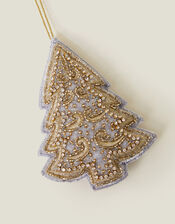 A dazzling addition to add to your own Christmas conifer, this embroidered tree decoration is bedazzled with golden threads, shimmery beads and sparkly diamantes.