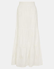 Perfect for al fresco lunch dates, this maxi skirt is made in light cotton with subtle floral embroidery through the tiered silhouette. Finished with a stretchy waist for all-day comfort. White