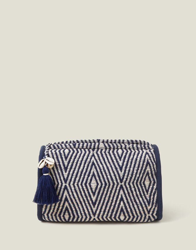 Made for hand luggage, this make-up bag features an Aztec-inspired weave and zip closure to keep your holiday make-up safe and secure. Finished with shell tassel detailing.