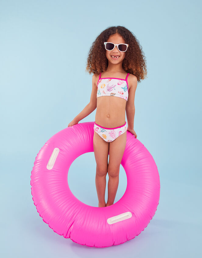 From starfish and shells to seahorses and jellyfish, this bikini set showcases all-things-sea! The pretty colours and friendly-faced fish will put a smile on their face when they see it in their suitcase, whilst the brief-cut bottoms and sleeveless cropped bikini top ensures a comfortable fit.
