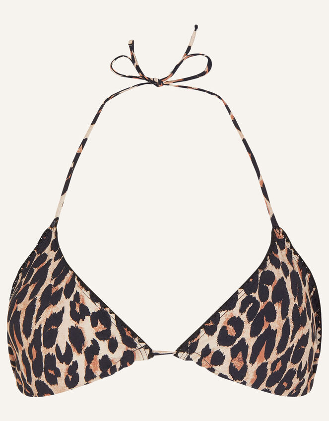 Leopard Blanket Stitch Triangle Bikini Top Brown
