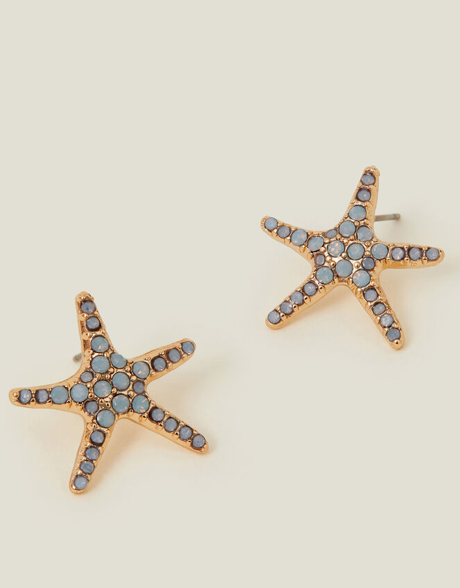 It's giving mermaid. The perfect accessories for all your holiday and summer looks, these studs showcase golden starfish encrusted with opal-inspired glass stones.