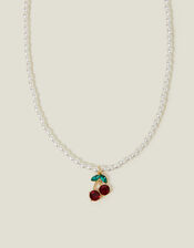 This cherr-ifically cute necklace is threaded with teeny tiny faux pearls and a super-sweet gem cherry pendant. Fastens with a lobster clasp and extender.