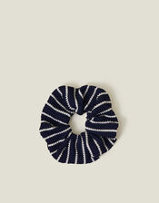 Hello, sailor. Patterned with nautical stripes, this hair scrunchie is designed with a stretchy ribbed finish.