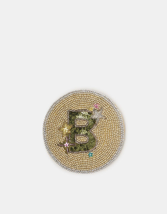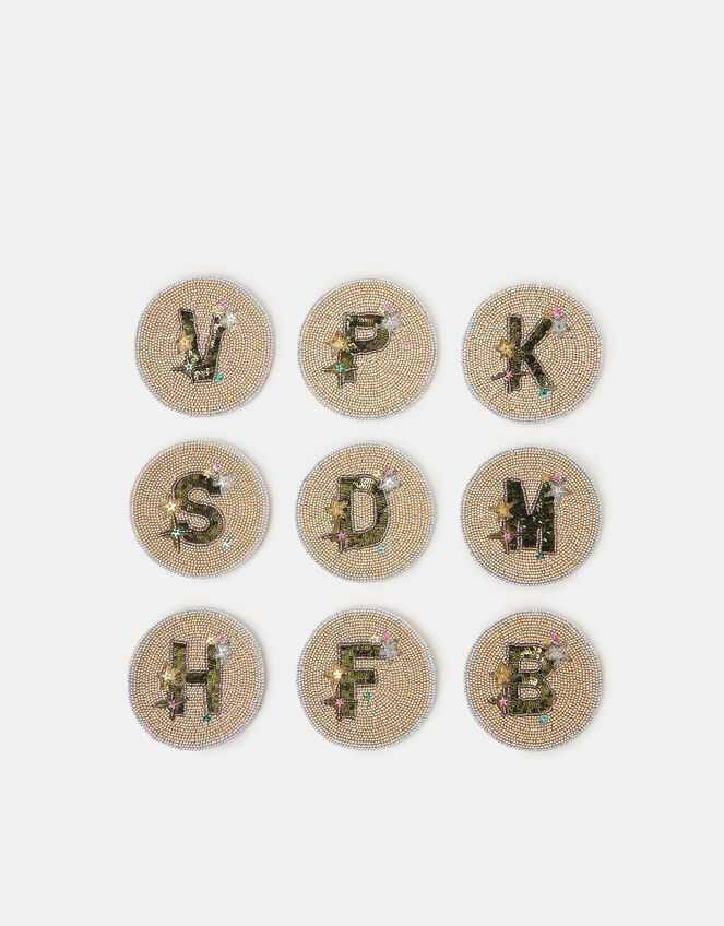 Add a personalised touch to your living space with this decorative drinks coaster. Designed in a round profile, it's embellished with beads and an initial of your choice at the centre. Gold