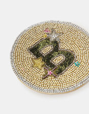 Round Initial Beaded Coaster Gold