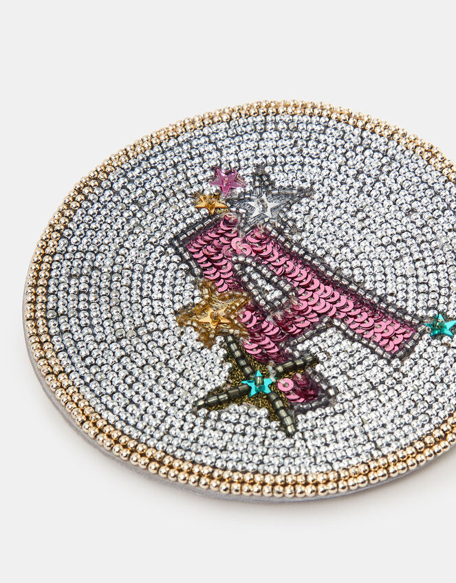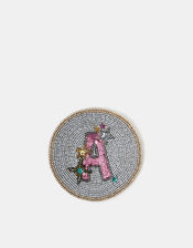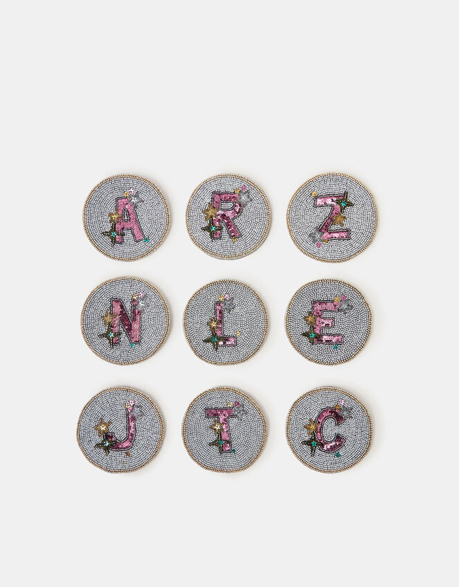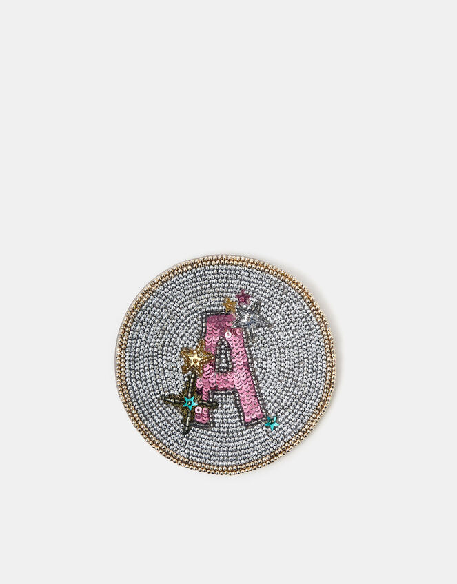 Add a personalised touch to your living space with this decorative drinks coaster. Designed in a round profile, it's embellished with beads and an initial of your choice at the centre. Silver
