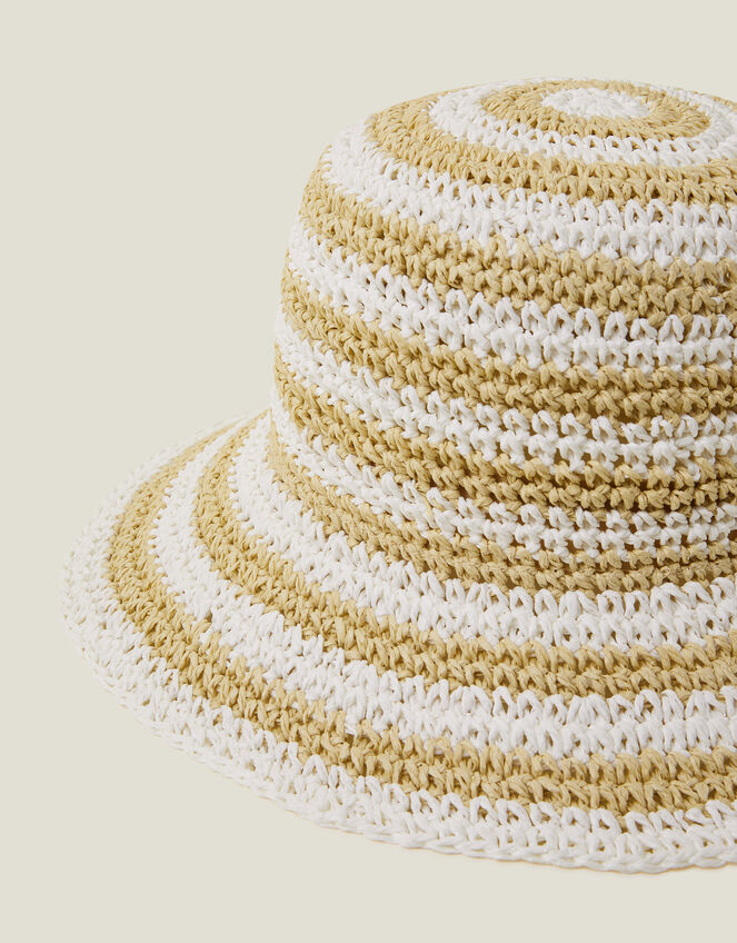 The ultimate sunny day accessory, this stripe hat has a classic bucket shape crafted from light, woven straw.