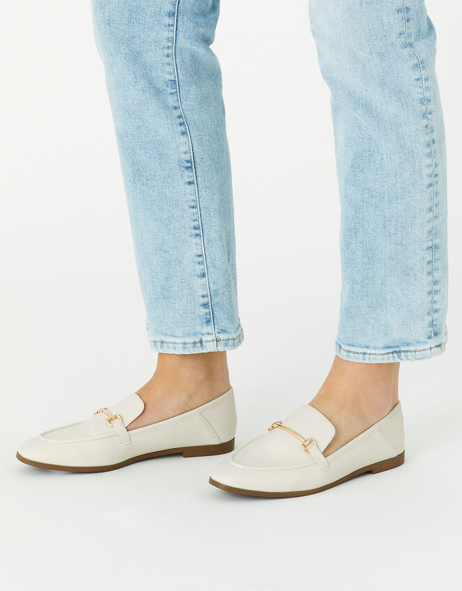 These loafers combine structured faux leather with a tapered toe, bringing you a shoe designed for the office. Finished with a chic gold metal bar. Ivory